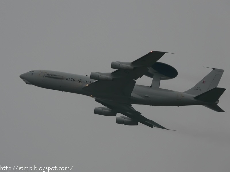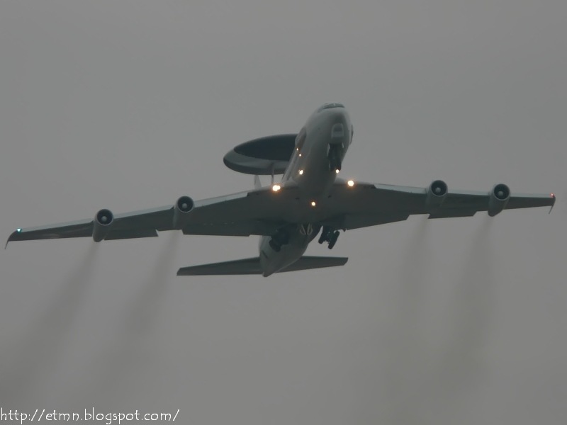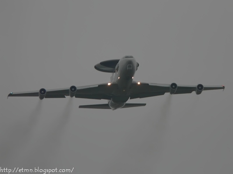 Als Highlight des Tages war heute noch eine E-3A in Nordholz und hat 1 1/2 Stunden lang Anflüge gemacht. Auf manchen der Bilder sieht es so aus als ob teilweise nur mit 3 Triebwerken geflogen wurde. Zumindest ist auf manchen Bildern keine Rauchfahne hinter dem äusseren linken Triebwerk zu sehen.