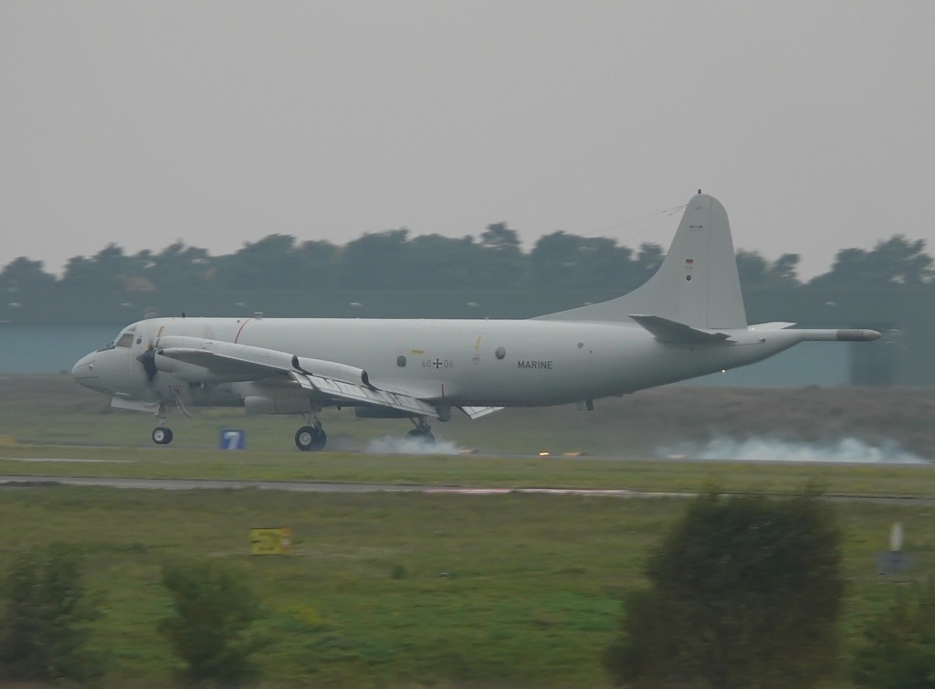 Letztlich entpuppte sich die Maschine als die 60+06. Bei der Landung ist mir ein recht interessantes Foto gelungen. Jedenfalls zeigt es die längste Qualmwolke die ich beim aufsetzen einer P-3 bis jetzt aufgenommen habe.
