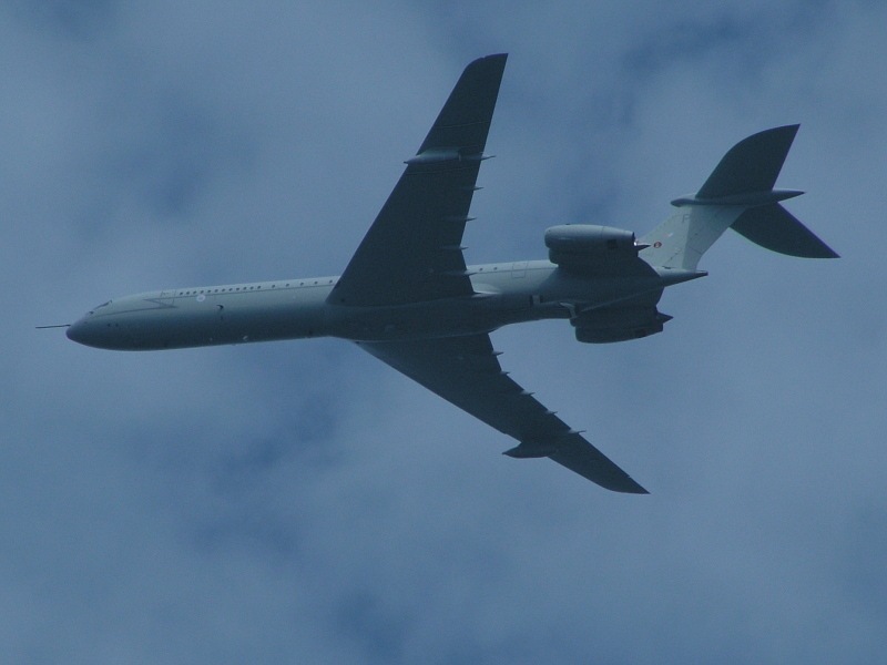 ein „P“ auf dem Seitenleitwerk. Eigentlich wurde die VC 10 als Verkehrsflugzeug entwickelt und gebaut, konnte sich aber gegen die Konkurenz von Boeing nicht durchsetzen. Bei der K4 handelt es sich um einen Umbau der Super VC 10. Siese Maschine hatte einen längeren Rumpf und konnte bis zu 139 Personen transportieren. Bei der Umrüstung zum Tanker wurde auf den zusätzlichen Rumpftank wie bei K1 und K2 verzichtet. Dies geschah um die Struktur des Flugzeuges nicht zu schwächen. Auch wurde der Tank im Seitenleitwerk nicht, wie bei den anderen Typen nicht vergrößert. Diese Maschine auf dem Foto hatte ihren Erstflug am 20.11.1968 mit dem Kennzeichen G-ASGB und der Seriennummer 866