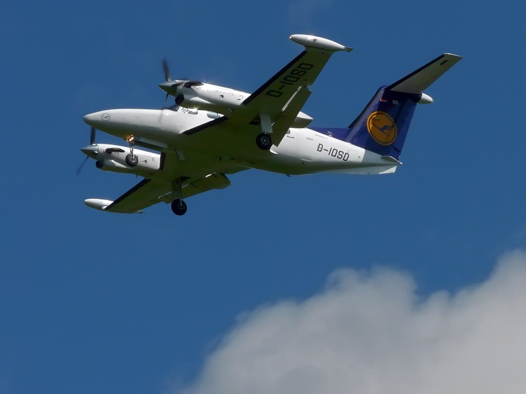 deutschen Airline die einen Kranich im Logo hat. Genau, von der Lufthansa. Allerdings kein Airliner, sondern eine Nummer kleiner. Es handelte sich um eine Piper PA-42-720 Cheyenne IIIA von Lufthansa Flight Training in Bremen. Sie hatte das Kennzeichen D-IOSD. Die Maschine machte bis um 12 Uhr einige Anflüge auf die Bahn 26.