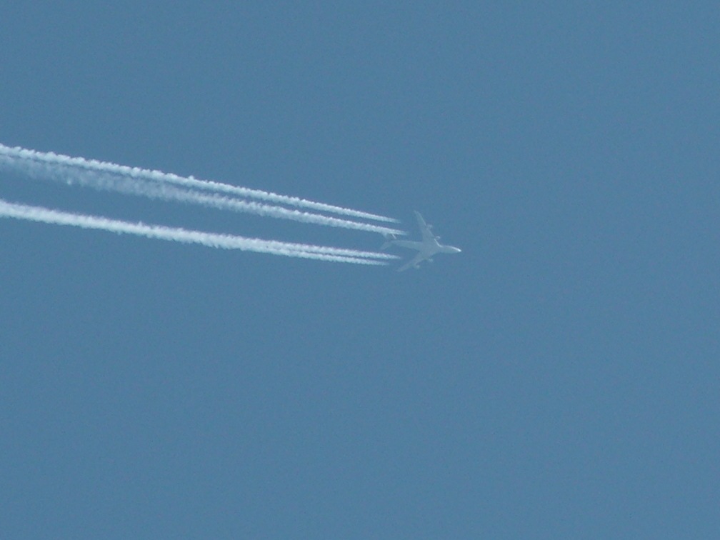 Und im Idealfall auch noch zu erkennen welcher Typ und welche Airline es ist. Das ist mit meiner Kamera (Kompakt mit 290mm KB) oftmals nicht so einfach. Aber bei diesem Beispiel denke ich mal das es sich um eine 747 oder einen A-340 handeln könnte.