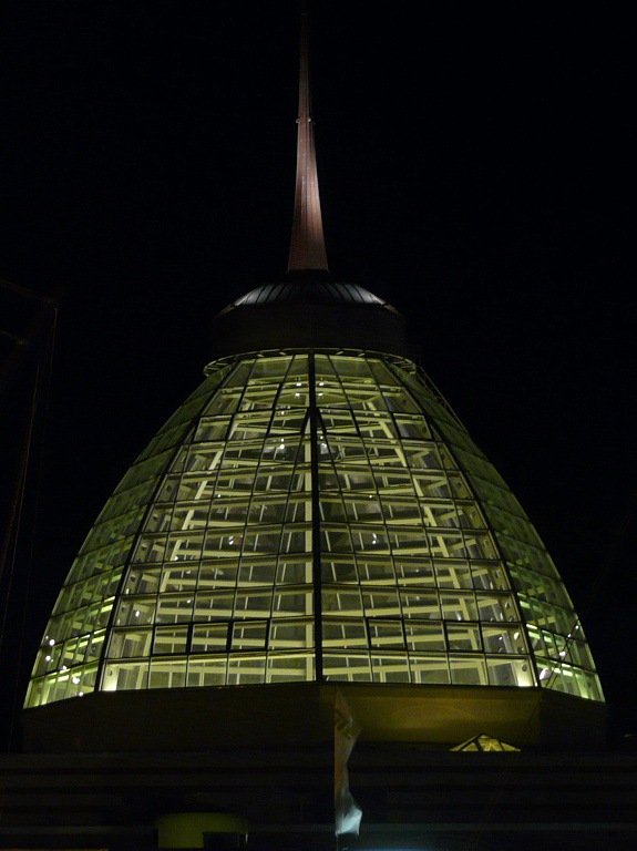Radarturm ist im dunklen etwas besonderes. Er wird mit verschiedenen Farben angeleuchtet und das macht sich im dunklen recht gut. Wieder hatte ich kein Stativ dabei und so musste ich improvisieren. Aber das hat mehr oder weniger geklappt. Wie man auf dem zweiten Bild sehen kann hat das Mediterraneo auch sowas wie der Bundestag.