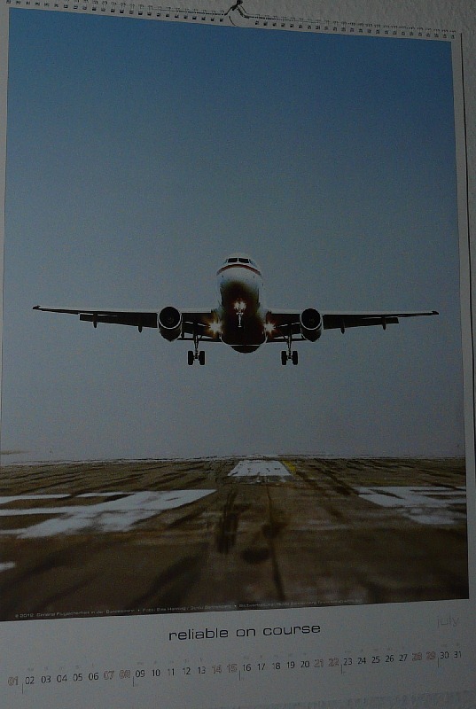 Schon wieder hatte ich eine Benachrichtigung der Post in meinem Briefkasten. Wieder konnte ein Paket nicht zugestellt werden da ich nicht zuhause war und wieder hatte ich keine Ahnung um was es sich handeln könnte. Auch bei genauerem Nachdenken konnte ich mir nichts und niemanden vorstellen der mir etwas schickt. Also einfach mal zur Post gefahren und der Dinge geharrt die da kommen. Die nette Dame am Schalter gab mir dann ein recht großes, flaches Päckchen. Neugierig habe ich dann mal auf den Absender geschaut und da stand “Luftwaffenamt Abteilung Flugsicherheit in der Bundeswehr”. Diese Zeile brachte dann die Erinnerung zurück. Mitte des Jahres hatte ich mal einen Anfrage ob ich ein Bild des neuen A319 hätte. Dieses sollte für den Flugsicherheitskalender 2012 dienen. Offensichtlich hat dann auch eines der von mir bereitgestellten Bilder den Geschmack getroffen und das Foto des A319 ziert die Juli Seite des Kalenders. Man war so nett mir gleich 3 Kalender zu schicken und nun können sich meine Eltern und mein Onkel auch an einem Exemplar erfreuen. Gleichzeitig kann ich mir nun auch die gestiegenen Zugriffszahlen auf spotterblog.de in den letzten Tagen erklären. Denn auch die Adresse ist unten auf dem Bild angegeben. Es ist schon cool ein eigenes Bild in einem Kalender zu sehen den man nicht selber gemacht hat. Und auch erstaunlich ist was mittels moderner Bildbearbeitung möglich ist, das aber ist ein anderes Thema 😉