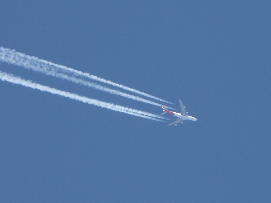 Wenn man es ganz genau nimmt, dann gab es am heutigen Tag eigentlich nichts zu fotografieren. Allerdings war es sehr klare Luft und dann achte ich schon fast automatisch darauf was so oben am Himmel fliegt. Und heute stand ich schon vor der Tür, bin dann aber noch mal schnell zurück in das Haus um die Kamera zu holen. Dabei ist dann dieses Bild einer 747-400 der Australischen Airline Qantas entstanden. In diesem Fall konnte man das sogar mit bloßem Auge erkennen aber sonst nutze ich auch gerne diese Seite.
