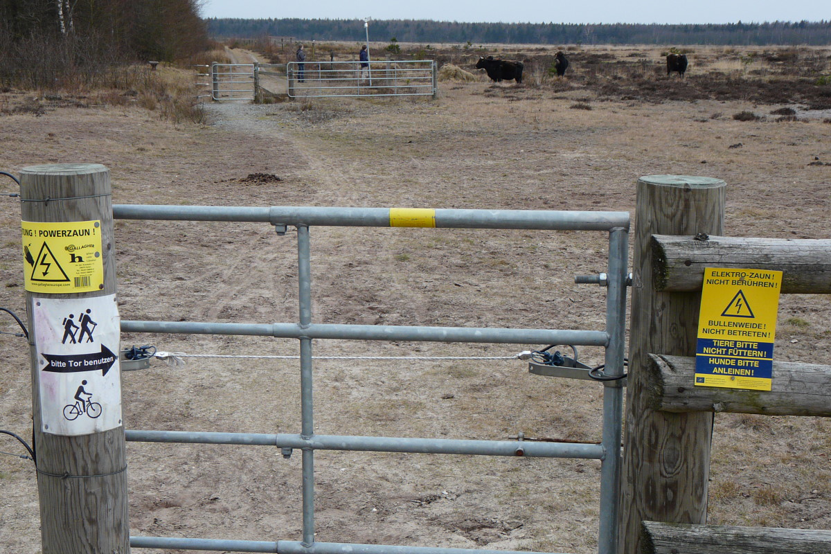 Da heute wieder mal die Sonne schien nutzte ich die Gelegenheit und machte mich auf zur Altenwalder Heide, oder anders gesagt dem ehemaligen Truppenübungsplatz. Dort werden in eingezäunten Gehegen unter anderem Heckrinder gehalten. Auf meinem 8 km Marsch habe ich dann auch tatsächlich welche angetroffen. An der Stelle bin ich dann auch über die Beschilderung gestolpert. Auf der einen Seite des Tors steht das man selbiges benutzen soll und auf der anderen Seite “Bullenweide, Nicht betreten”. Da die Heckrinder nicht gerade klein sind und auch keine 50 Meter entfernt waren, habe ich dann dem rechten der Schilder folge geleistet. Auf dem Rückweg habe ich dann noch einen Tennisball gefunden den sicher ein Hund dort vergessen hat. Falls das Herrchen mitliest, er ist noch da.